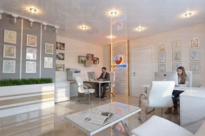 Офис (магазин сантехники продолжение). Разработка дизайна офиса с подбором отделочных материалов и мебели.
