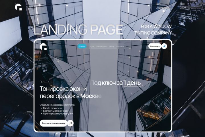 Разработать высококонверсионный, современный и доверительный дизайн лендинга для компании, предлагающей услуги по тонировке окон в Москве.