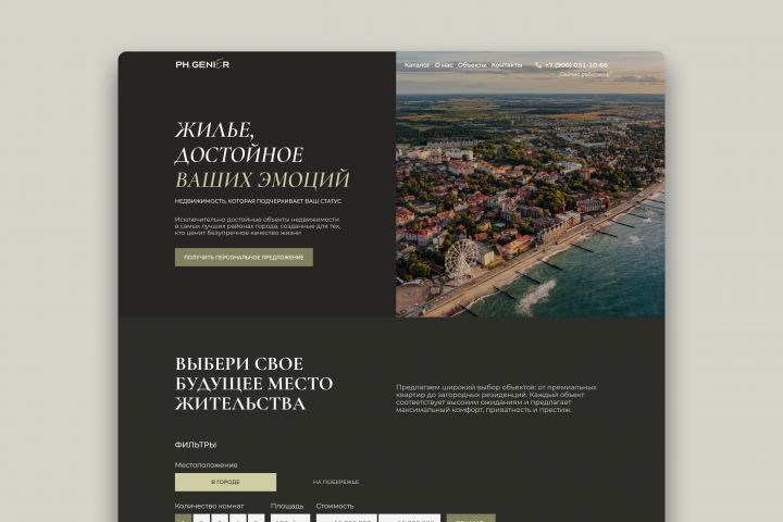 Цель проекта: Создание современного, визуально привлекательного и функционального веб-сайта для демонстрации премиальных объектов жилой недвижимости, привлечения потенциальных покупателей и повышения узнаваемости бренда.