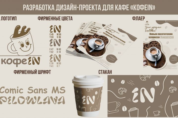Идея проекта: В основе фирменного стиля лежит образ дружелюбной чашки кофе — персонажа, который символизирует настроение бренда. Иллюстративный логотип делает кафе более запоминающимся и создаёт ощущение тепла и гостеприимства. Такой персонаж ассоциируется с улыбкой, хорошим настроением и приятным отдыхом.