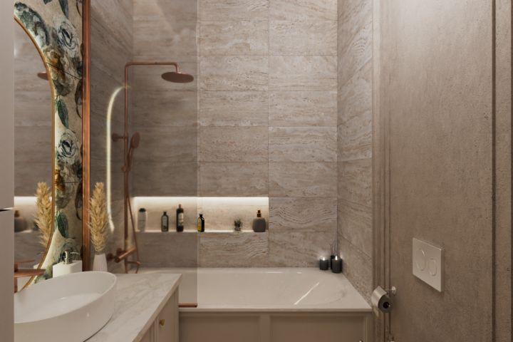 Необходимо было срочно в течение 1 дня визуализировать ванную комнату с учётом пожеланий заказчика по материалам отделки и референсам