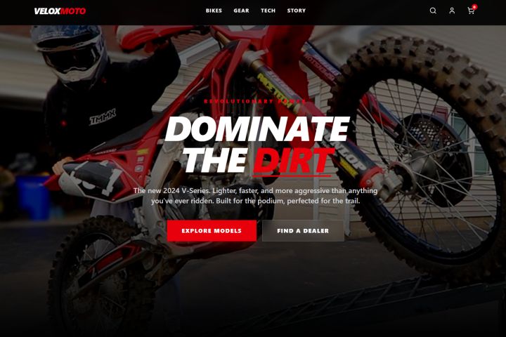Основная цель - сделать сайт визуально сильным, современным и удобным для пользователей. Необходимо было создать атмосферу, передающую характер бренда: скорость, свободу и технологичность. При этом важно было сохранить простоту навигации и понятную структуру каталога.