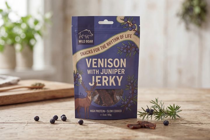 Дизайн серии упаковок для мясных снеков (jerky) бренда Wild Boar. Разработана яркая линейка с разными вкусами: говядина, ягнёнок, оленина, курица терияки и авторские сочетания. Для каждого вкуса создана собственная цветовая палитра и иллюстрации, отражающие происхождение продукта. Стиль сочетает современную типографику, природные мотивы и понятную навигацию на полке, благодаря чему упаковка легко выделяется в магазине и формирует целостный образ бренда.