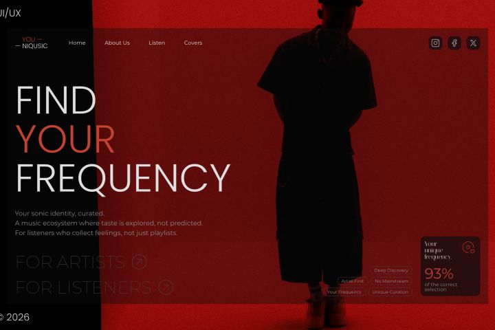Разработал целостную визуальную концепцию на основе метафоры звуковой волны и эмоционального минимализма, чтобы через атмосферный дизайн и структуру, построенную вокруг человеческой курации, превратить процесс поиска музыки из алгоритмической выдачи в глубокий эмоциональный опыт.