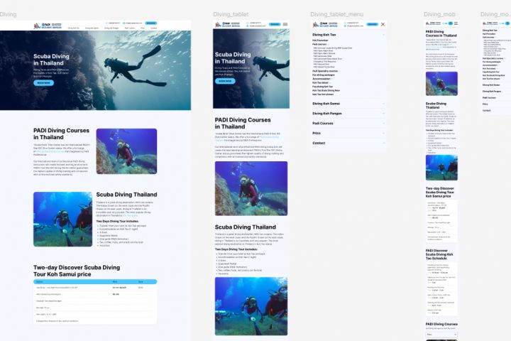Разработка дизайна сайта компании занимающейся услугами дайвинга в Тайланде