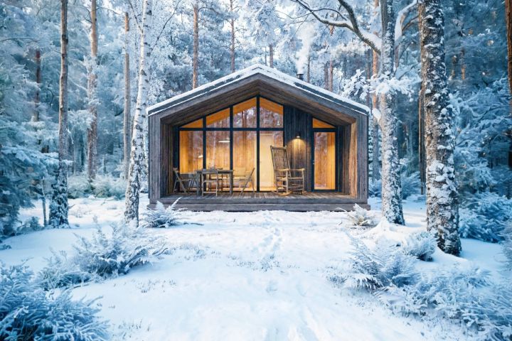 Заказчик обозначил несколько ключевых требований: здание должно быть малогабаритным, но вместительным, иметь открытую террасу с интегрированной купелью и обеспечивать максимальную визуальную связь интерьера с окружающей природой. При этом требовалось сохранить приватность отдыхающих и использовать современные, долговечные материалы, подходящие для быстрого возведения.
