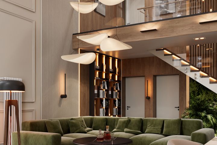 Дизайн интерьера двухсветной кухни-гостиной индивидуального жилого дома в Вологде (2026) archijam@yandex.ru http://www.archijam.ru
