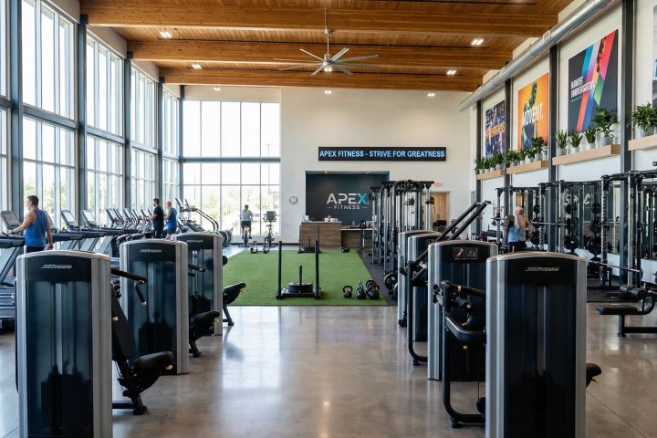 — Покажу зонирование: тренажёрный зал, рецепция, раздевалки и вспомогательные зоны.
