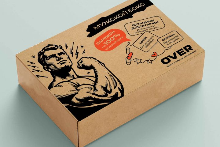 Сделать дизайн в 2-3 краски для печати на коробке. Мужской бокс с витаминами.