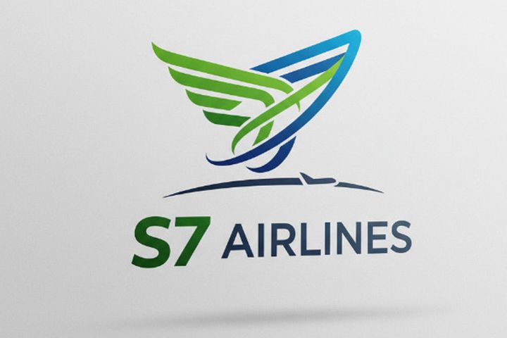 Концепт логотипа S7 Airlines с более выразительным графическим знаком, который передаёт динамику полёта, движение и визуальную связь с авиационной тематикой.