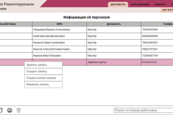 Автоматизировать учет за ремонтом оборудований, поступающих в сервисный центр. Экспортировать данные в excel таблицу. Иметь API для работы с базой данных. Хорошо работать на мобильных устройствах