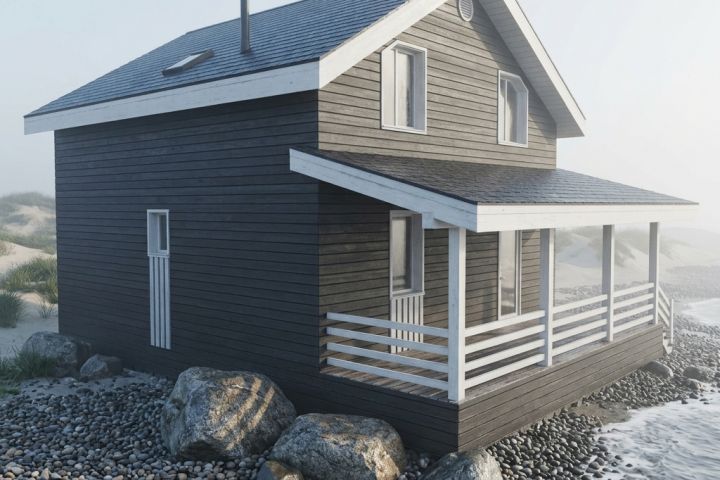 Тип дома: Деревянный каркас Крыша: Двухскатная Стиль: Скандинавский Этажность: 2 этажа Фундамент: винтовые сваи Снеговой район: III Пиломатериал: обрезной 50х100, 50х150, 50х200 Особенности: мансарда
