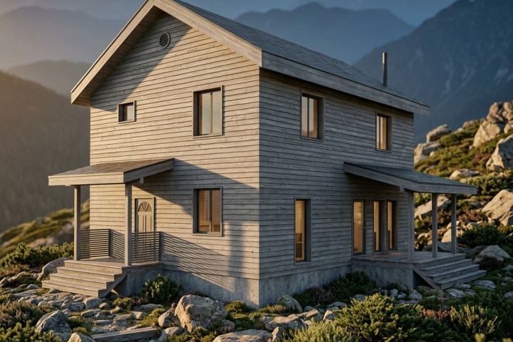 Тип дома: Деревянный каркас Крыша: Двухскатная Стиль: Скандинавский Этажность: 2 этажа Фундамент: винтовые сваи Снеговой район: III Пиломатериал: строганый 45х95, 45х145, 45х195