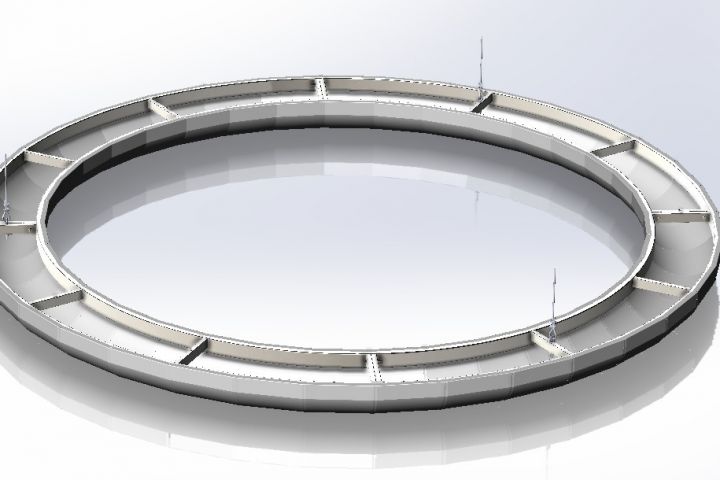 Необходимо было разработать по заданию заказчика кашпо декоративное для подвешивания к потолку. Основная задача заключалась в расчете прочности каркаса, чтоб изделие диаметром 3 м. не развалилось под весом грунта