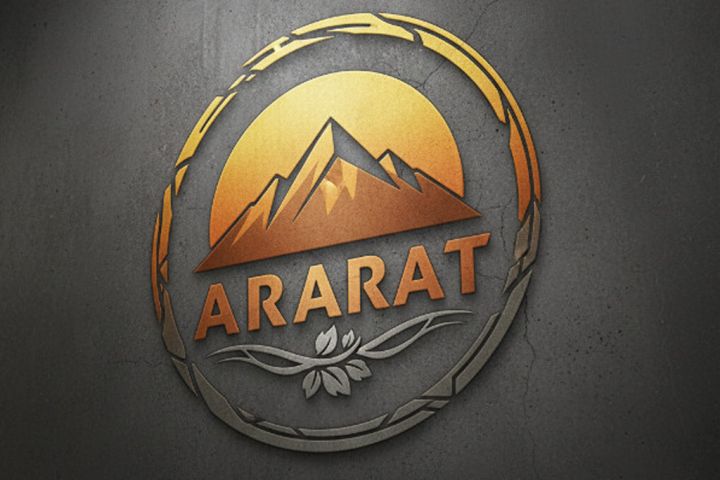 Концепт логотипа ARARAT, оформленный в виде объемной металлической эмблемы (мокап).