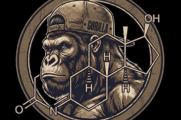 Нужно было по описанию изменить принт муж футболки c изображением гориллы и текста