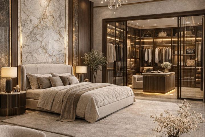 Спальня — мягкая, приватная, с переходом в гардеробную