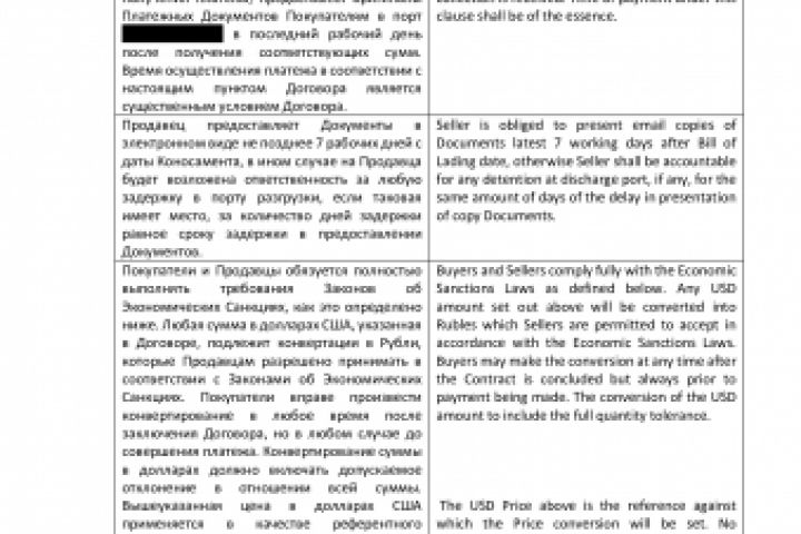 Договор поставки. Фрагмент перевода. Рус.-англ.