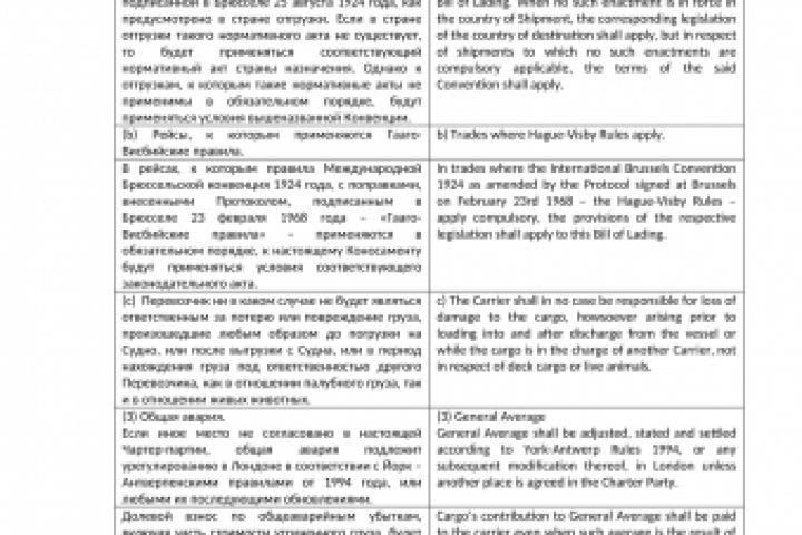 КОНОСАМЕНТ. УСЛОВИЯ ПЕРЕВОЗКИ. РУС.-АНГЛ.