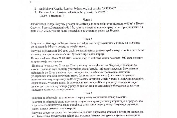 Перевод договора аренды квартиры с сербского языка на русский язык
