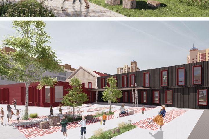 Концепция проекта заключается во внедрении элементов русского современного стиля в архитектуру детского сада. Одним из ярких акцентов являются ставни красного цвета, которые символизируют уют и традиции русского народа. Детский сад будет включать 10 групп, это обеспечит комфортное и безопасное пространство для детей разного возраста. На третьем этаже предусмотрены кружковые и мастерские по гончарному мастерству и рукоделию. Не только место обучения, но и культурный центр.