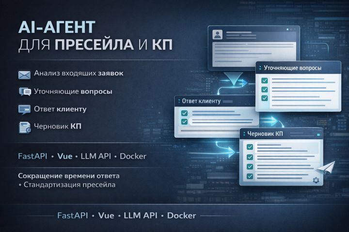 Разработал AI-агента для автоматизации первичной обработки входящих клиентских запросов и подготовки черновика коммерческого предложения. Проект решал типовую проблему отдела продаж и пресейла: входящие письма, заявки и обращения разбирались вручную, из-за чего скорость ответа зависела от загруженности и квалификации конкретного сотрудника, а качество первичной коммуникации было нестабильным. Требовалось сократить время реакции на запрос, стандартизировать подготовку ответа и упростить формирование коммерческого предложения на основе содержания обращения.