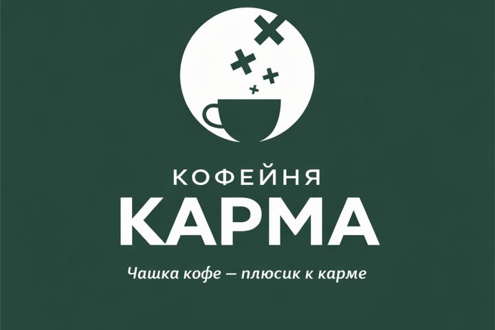 Слоган "плюсик к карме" предложил я через 2 дня логотип был готов. Вместо классического "дыма" в чашке мы сделали пару плюсиков, что немного иронично отображало концепцию заведения.