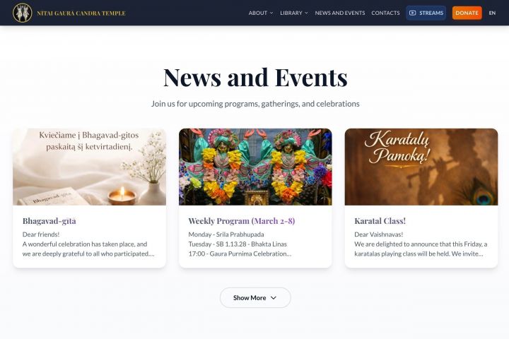 Сайт разработан с целью сделать деятельность общины и духовный контент более доступными онлайн.
