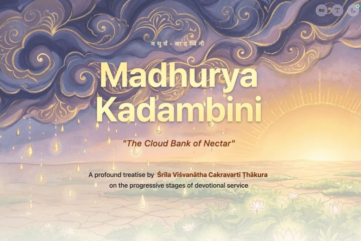 Цифровое издание классического философского труда «Мадхурья Кадамбини». Проект превращает сложный философский текст в структурированный и доступный цифровой формат, дополненный продуманными визуальными элементами.