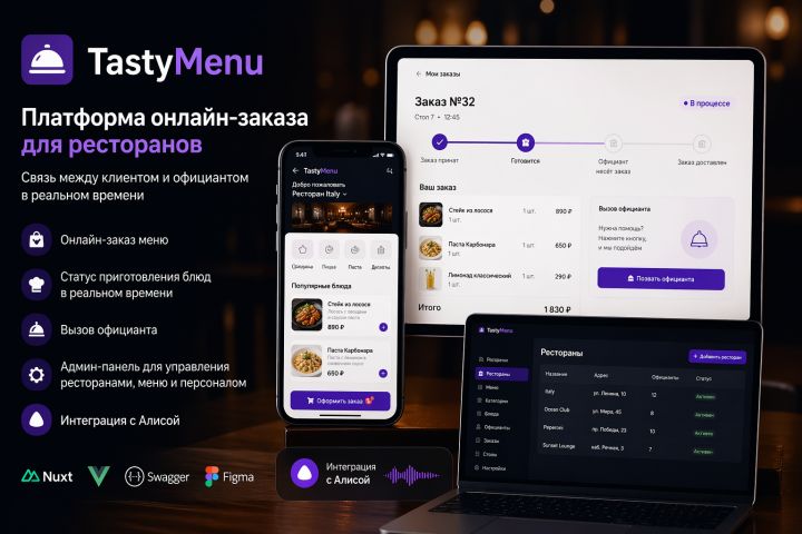 Платформа может использоваться как готовое решение для ресторанного бизнеса и масштабироваться под разные сети заведений.