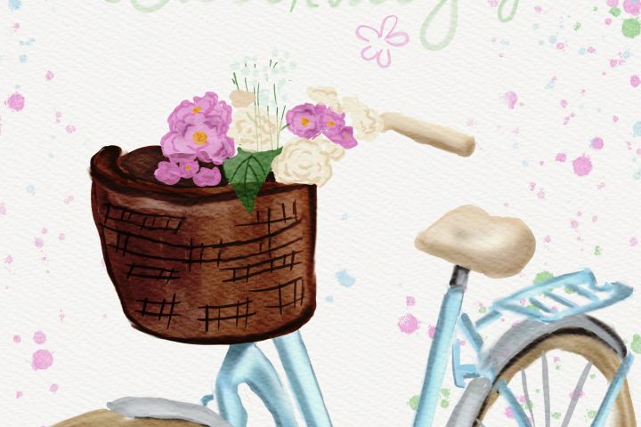 Иллюстрация, исполнена в акварельном стиле в программе Procrate, подойдет, как дизайн открытки на день рождения