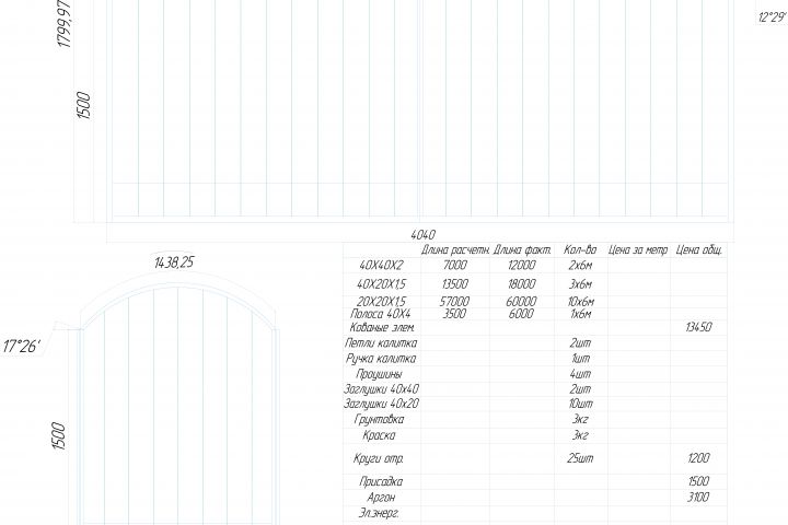 Разработать полный комплект конструкторской документации на входную группу для частного домовладения: распашные ворота и отдельно стоящая калитка с коваными декоративными элементами.