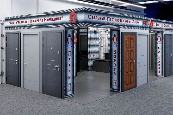 Клиент поставил задачу создать не просто торговую точку, а мощный имиджевый инструмент, который транслирует надёжность и профессионализм компании. Основная цель — мгновенно донести до посетителя ключевую ценность бренда: продукция ВПК способна противостоять огню. Нужно было организовать пространство так, чтобы клиент с порога понял: перед ним серьёзный производитель, предлагающий полный цикл услуг — по выбору и изготовлению дверей.