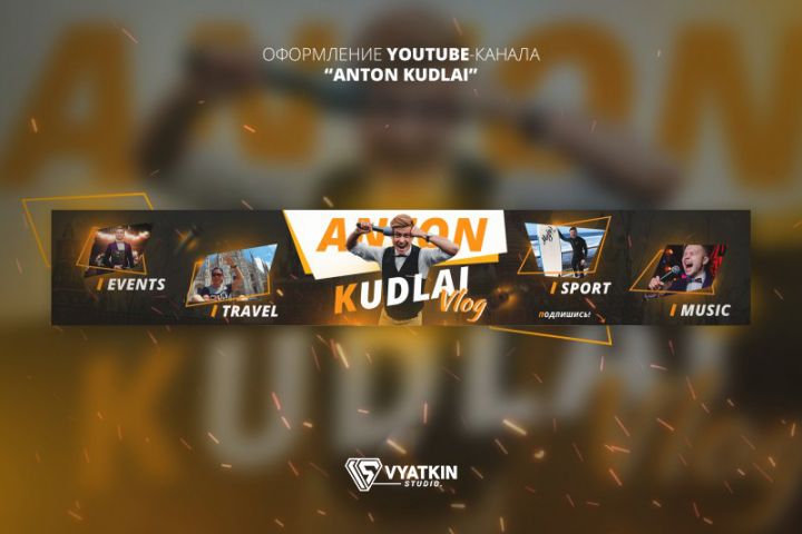 Шапка для YouTube-канала "Anton Kudlai". Направление: Личный бренд ведущего мероприятий.