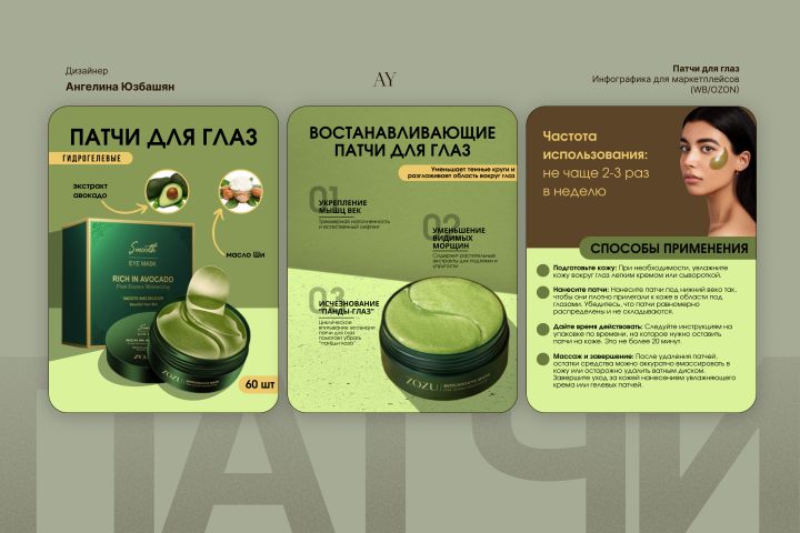 Делюсь новой работой — серией карточек для гидрогелевых патчей с экстрактом авокадо.