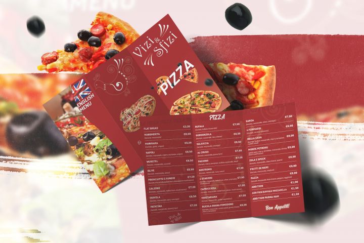 Меню для итальянской пиццерии Vizi & Sfizi.