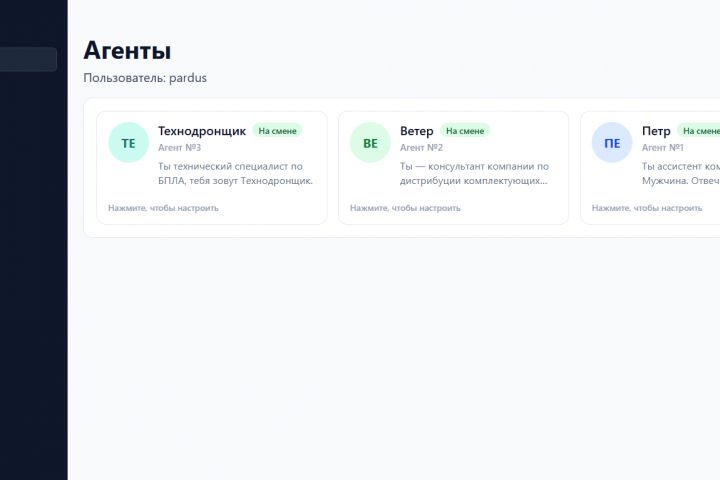 Разработана CRM-платформа, где вместо людей работают AI-агенты — каждый со своей ролью, знаниями и каналами коммуникации. Никакого сложного промпт-инжиниринга: агенты создаются через простую форму за 2 минуты.