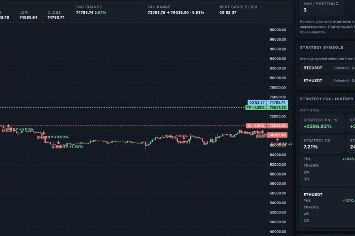 Система используется для автоматизации торговли и может быть адаптирована под различные стратегии и рынки.