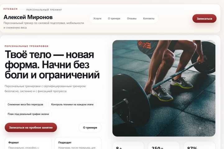 Особенности: 2 роли пользователей (Клиент, Администратор), уведомления в Telegram после записи, RLS-политики безопасности, самостоятельное управление контентом