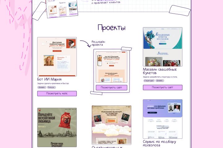 Я разработала структуру сайта, написала тексты, разработала уникальный дизайн, перенесла на Тильду, настроила анимацию, настроила дизайн под все устройства