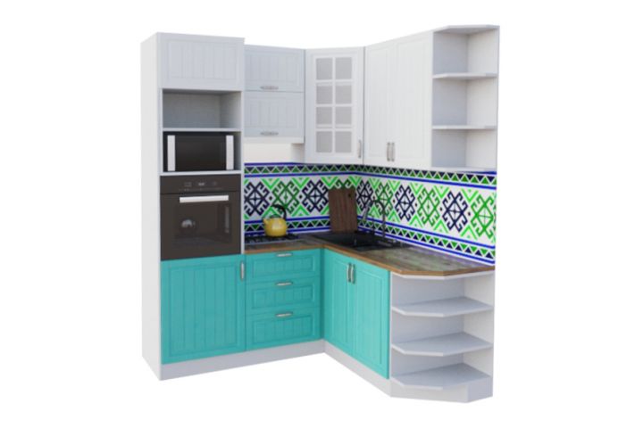 Моделирование кухни по чертежу, внесение изменений по пожеланиям заказчика, разработка рисунка фартука