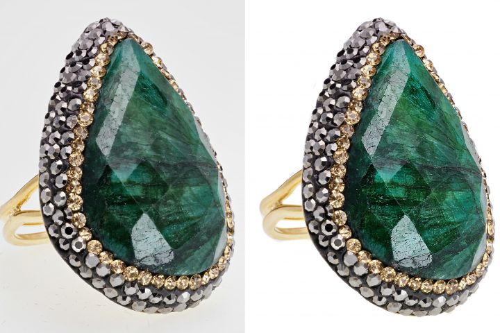 В процессе ретуши убирается мелкий и крупный мусор, у изделия остается текстура, не замыливается, общей картинке придается резкость, на камнях увеличиваются цветовые акценты