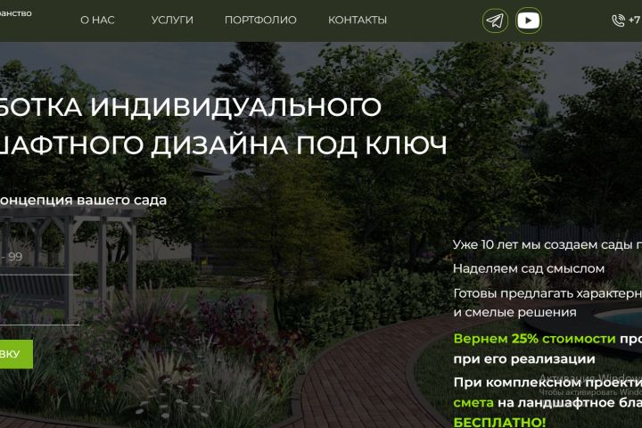 Лендинг дизайнера ландшафтного дизайна