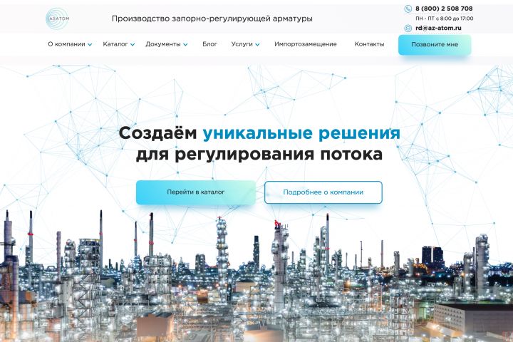 Выполнили полный комплекс редизайна для завода АЗ АТОМ в г Казань. Разработка на платформе Webflow
