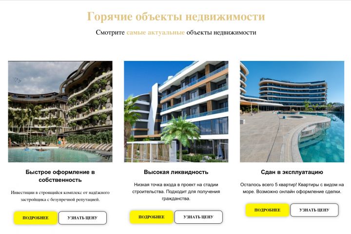 Выполнили разработку сайта для агентства недвижимости в Турции "Deral Group" Разработка на платформе Tilda.