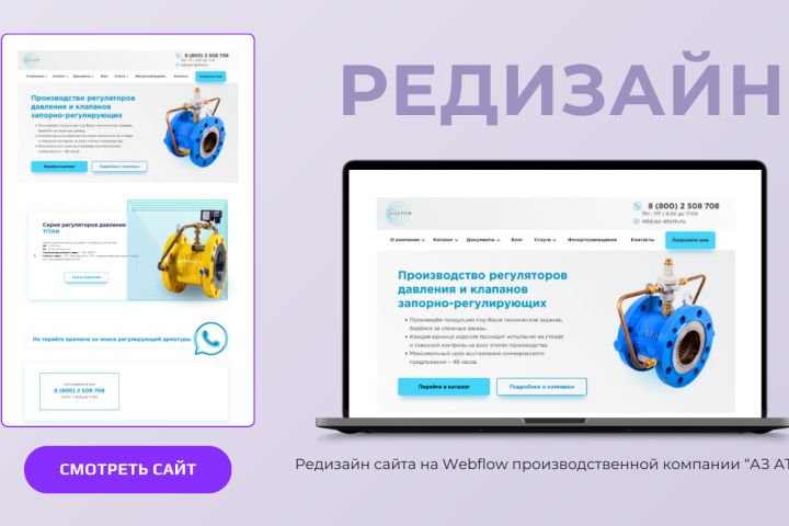 Выполнили редизайн сайта под ключ для промышленного предприятия АЗ АТОМ с сохранением семантики.Разработка на платформе Webflow.