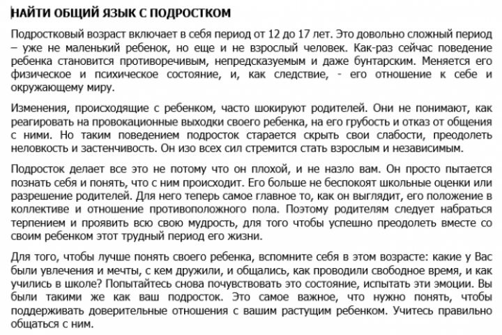 Психология. Небольшой текст о том, как найти общий язык с подростком.