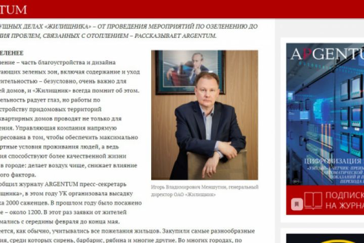 Статья о ЖКХ в журнал о деловых людях ARGENTUM г. Смоленск