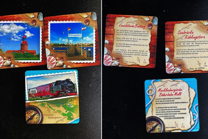 Лицевая и оборотная стороны сувенирных подставок под стаканы с напитками с городами и достопримечательностями