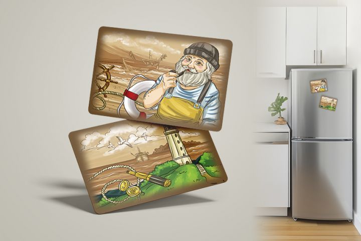 Иллюстрации для сувенирных туристических магнитов на тему Балтийского моря